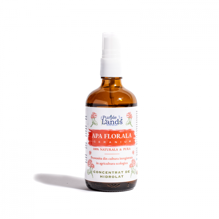 Apă Florală de Geranium 🌿 este un hidrolat pur, obținut prin distilarea cu abur a florilor de Pelargonium graveolens. Renumită pentru proprietățile sale tonifiante, echilibrante și regenerante, această apă florală este potrivită pentru toate tipurile de ten, în special pentru pielea mixtă și grasă.