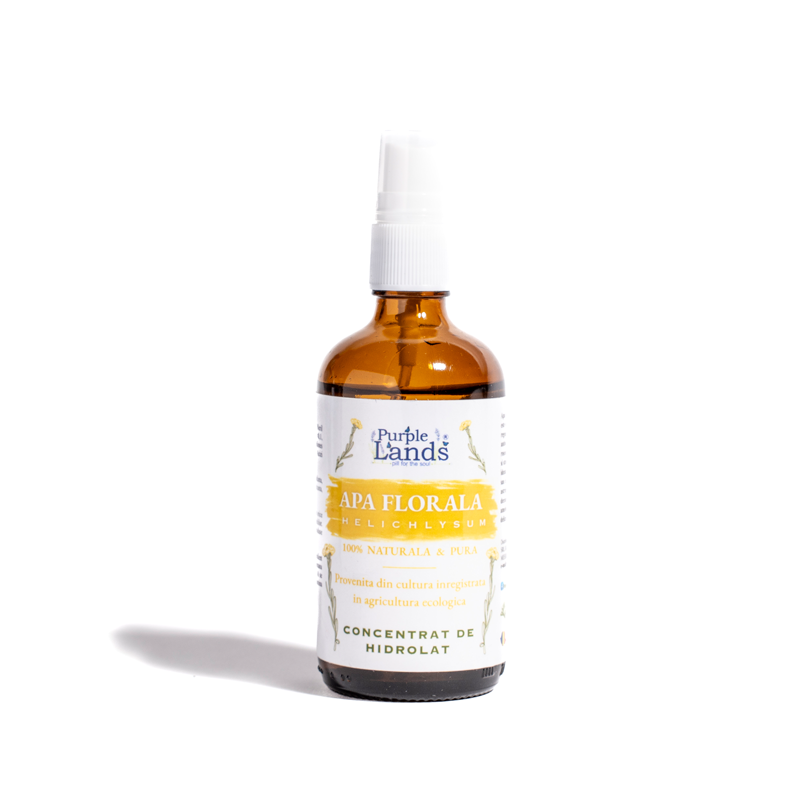 Apa florală de Helichrysum este un produs premium 100% natural, obținut prin distilarea florilor proaspete de Helichrysum italicum. Datorită proprietăților sale excepționale, este un aliat de încredere pentru pielea sensibilă, predispusă la roșeață sau iritații. Ajută la calmarea pielii afectate de acnee, dermatită sau eczeme și accelerează procesul natural de regenerare celulară.
