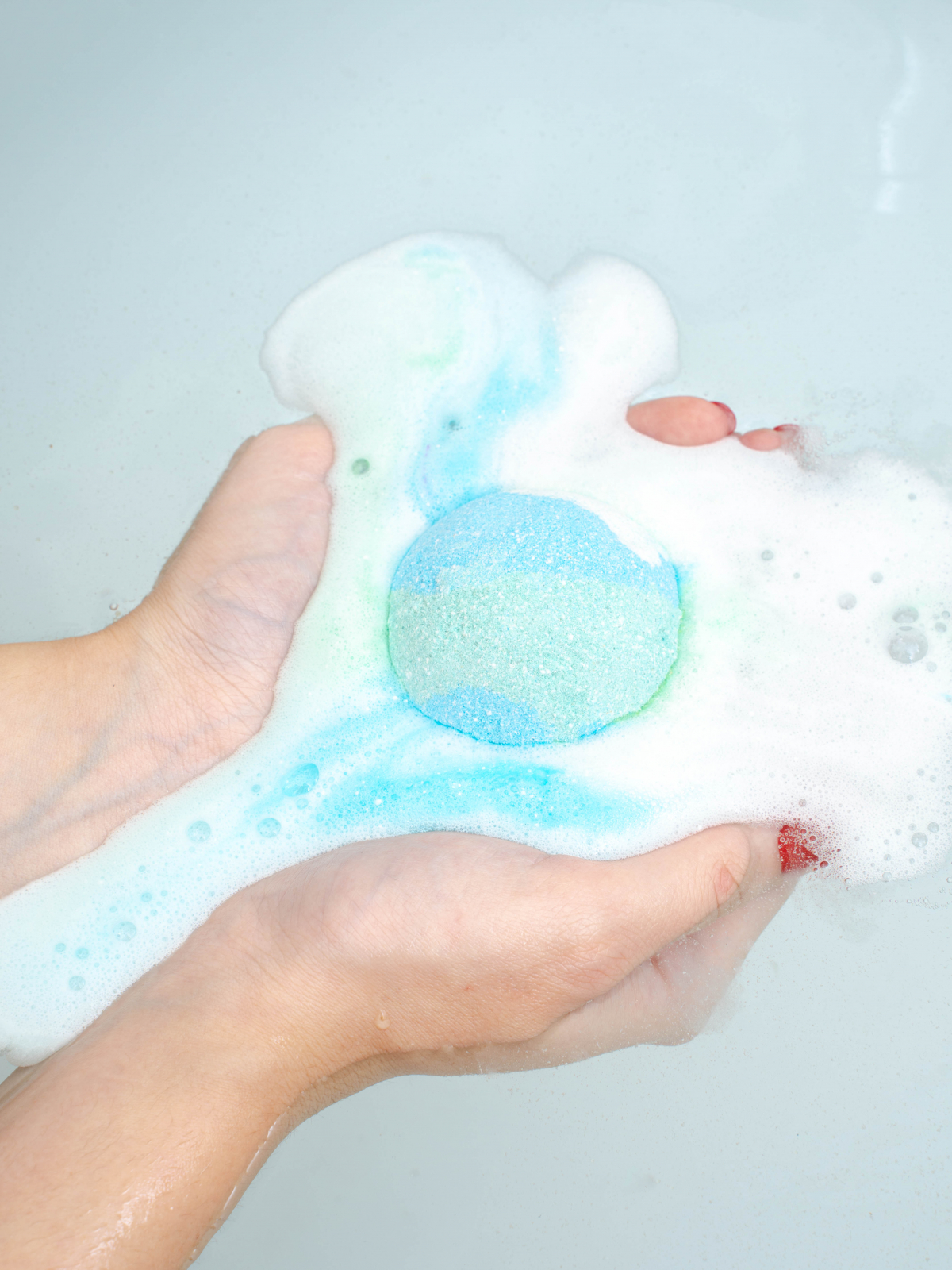 3. Aruncati bila in apa. Bila efervescenta va incepe sa spumege si sa elibereze culorile si uleiurile esentiale.