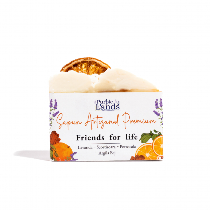 Friends for Life este un sapun 100% natural marca Purple Lands. Din primele clipe el devine un  rasfat pentru cel ce il foloseste si se remarca prin calitate si rafinament.
