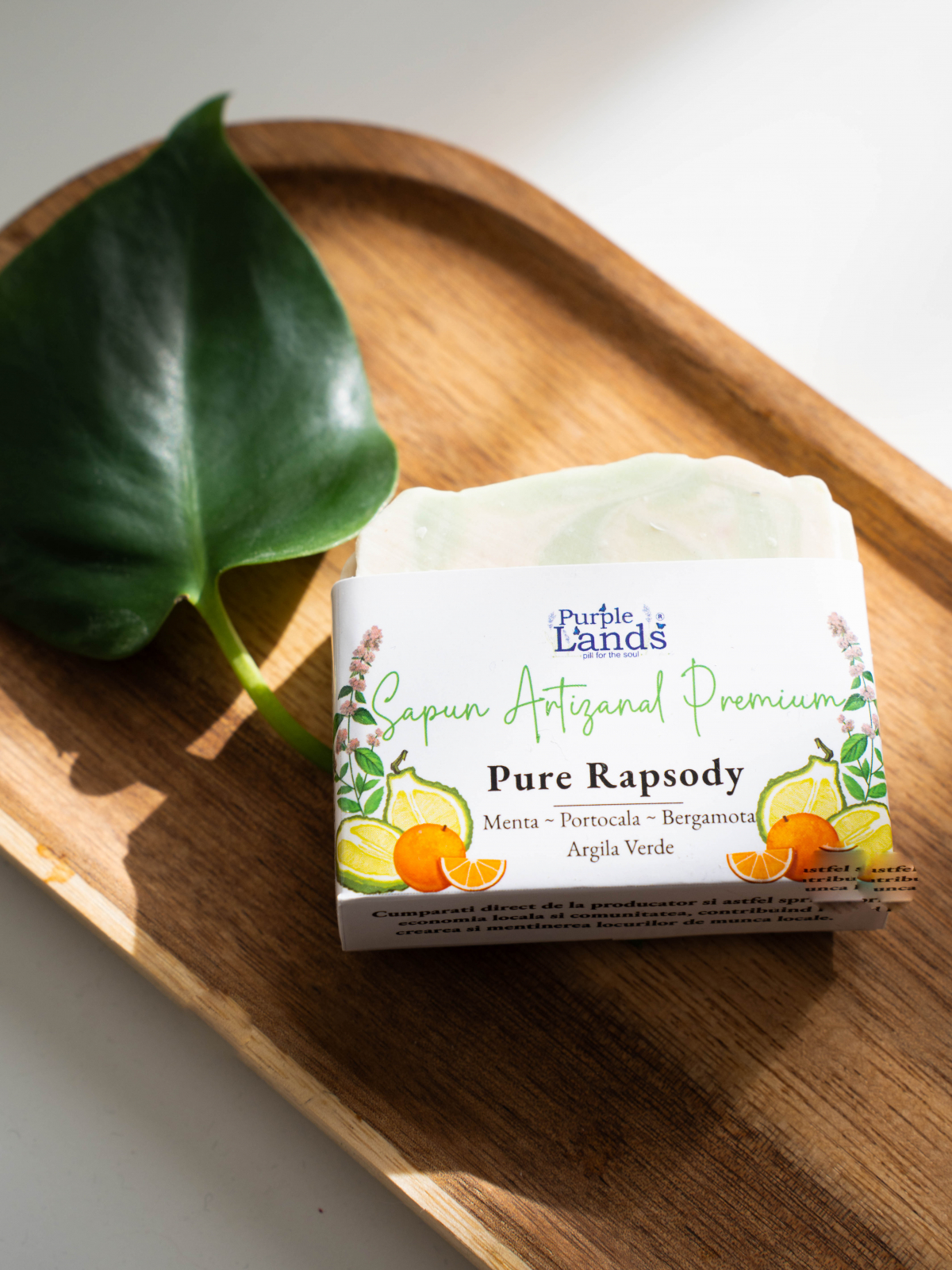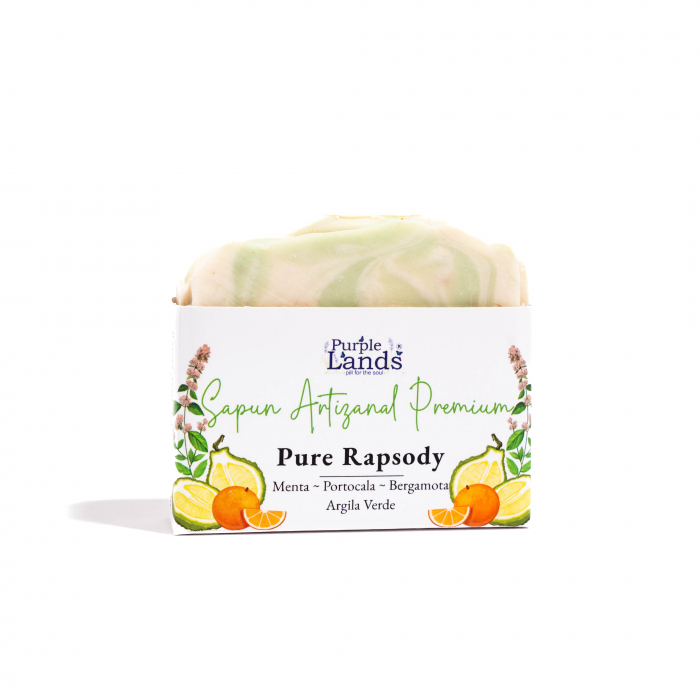 Ingrediente: ulei de cocos, ulei de palmier, ulei de masline , ulei de ricin, unt de shea, unt de cacao, ulei esential de menta, ulei esential de portocala, ulei esential de bergamota, argila verde, apa pura de lavanda,