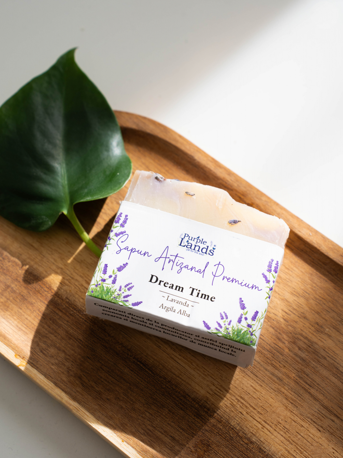 Dream Time este un sapun 100% natural marca Purple Lands. Din primele clipe el devine un  rasfat pentru cel ce il foloseste si se remarca prin calitate si rafinament.