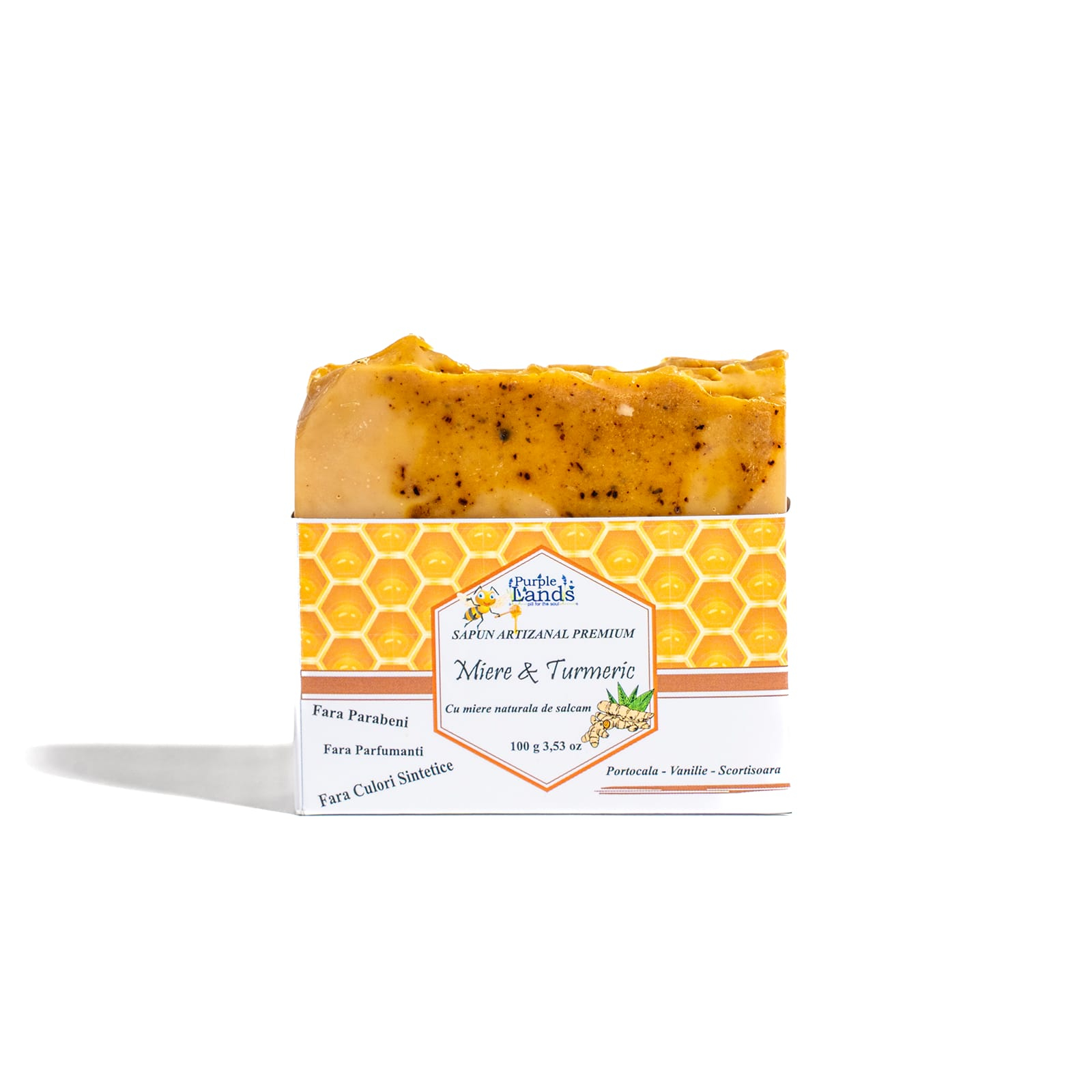 Mierea de salcâm și turmericul revitalizează și uniformizează pielea, în timp ce unturile și uleiurile vegetale hrănesc în profunzime. Aroma caldă de portocală, scorțișoară și vanilie transformă fiecare utilizare într-o experiență senzorială unică.