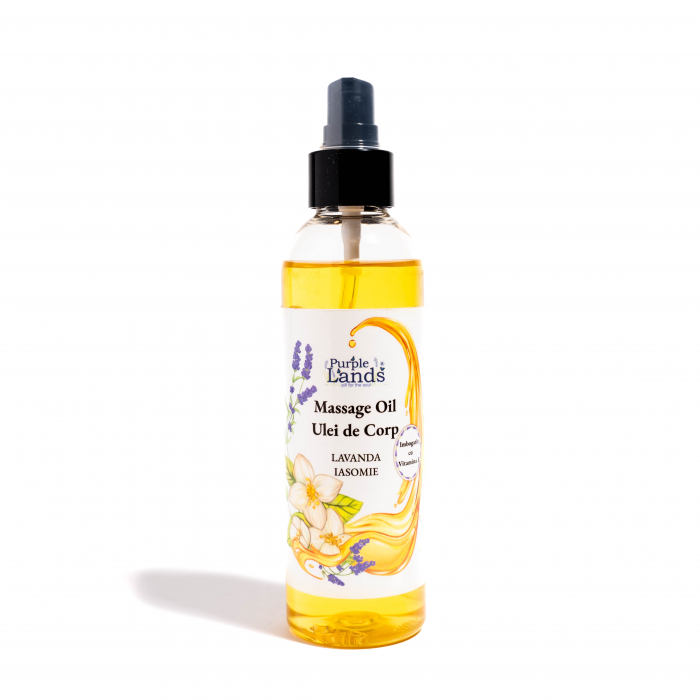 Uleiul de corp reface echilibrul natural al pielii, imbunatateste circulatia sangelui pe suprafata corpului si ajuta in lupta cu celulita. Creste perspiratia pielii, contribuind astfel la eliminarea substantelor toxice.   De aceea, uleiul de corp Purple Lands cu lavanda -Iasomie este recomandat si persoanelor cu pielea sensibila, cu probleme ale vaselor de sange sau cu hipertensiune, ce nu pot folosi produse anticelulitice termo-active. Uleiul de corp cu lavanda si Iasomie se poate folosi la masajul anticelulitic si de relaxare sau ca ulei de corp, fiind extrem de apreciat pentru parfumul sau inconfundabil.