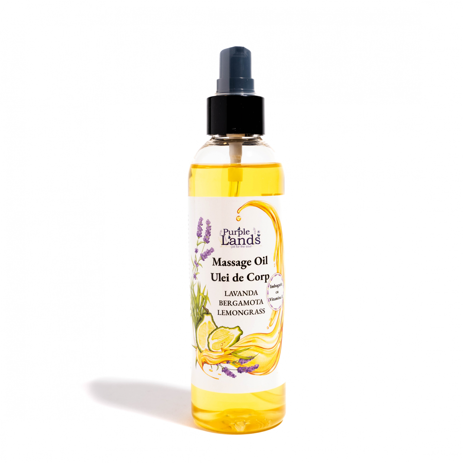 Uleiul de corp reface echilibrul natural al pielii, imbunatateste circulatia sangelui pe suprafata corpului si ajuta in lupta cu celulita. Creste perspiratia pielii, contribuind astfel la eliminarea substantelor toxice. De aceea, uleiul de corp Purple Lands cu lavanda -lemongrass si bergamota este recomandat si persoanelor cu pielea sensibila, cu probleme ale vaselor de sange sau cu hipertensiune, ce nu pot folosi produse anticelulitice termo-active. Uleiul de corp cu lavanda, lemongrass si bergamota se poate folosi la masajul anticelulitic si de relaxare sau ca ulei de corp, fiind extrem de apreciat pentru parfumul sau inconfundabil.