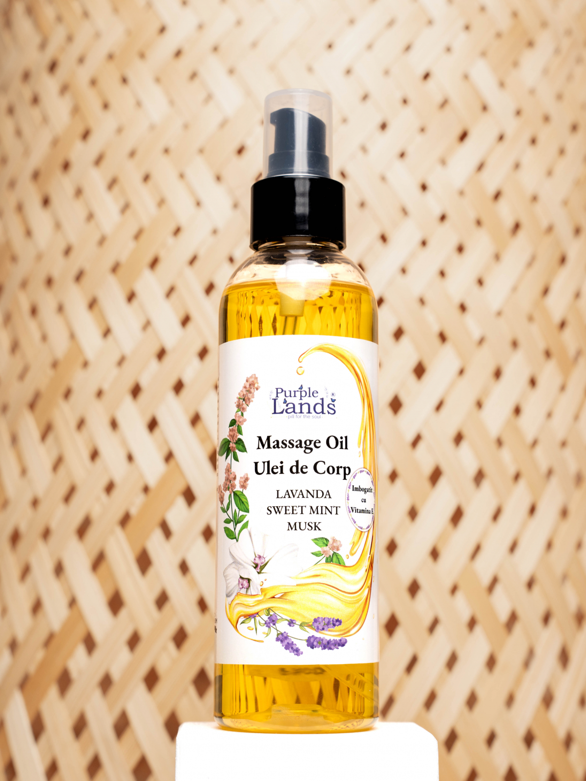 Uleiul de corp reface echilibrul natural al pielii, imbunatateste circulatia sangelui pe suprafata corpului si ajuta in lupta cu celulita. Creste perspiratia pielii, contribuind astfel la eliminarea substantelor toxice. De aceea, uleiul de corp Purple Lands cu lavanda -menta dulce si musk este recomandat si persoanelor cu pielea sensibila, cu probleme ale vaselor de sange sau cu hipertensiune, ce nu pot folosi produse anticelulitice termo-active. Uleiul de corp cu menta dulce si musk se poate folosi la masajul anticelulitic si de relaxare sau ca ulei de corp, fiind extrem de apreciat pentru parfumul sau inconfundabil.